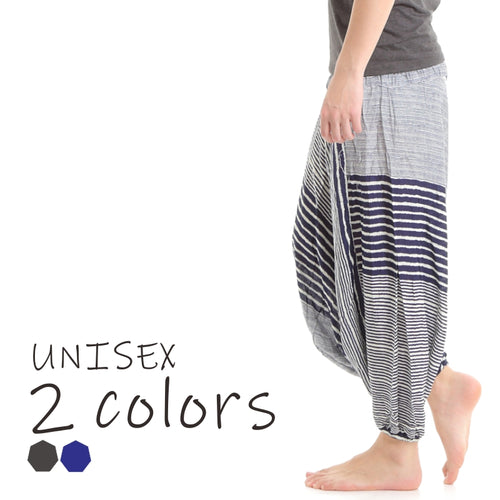 サルエルパンツ メンズ レディース アラジンパンツ レーヨン ボーダー柄 タイパンツ ユニセックス オールインワン M